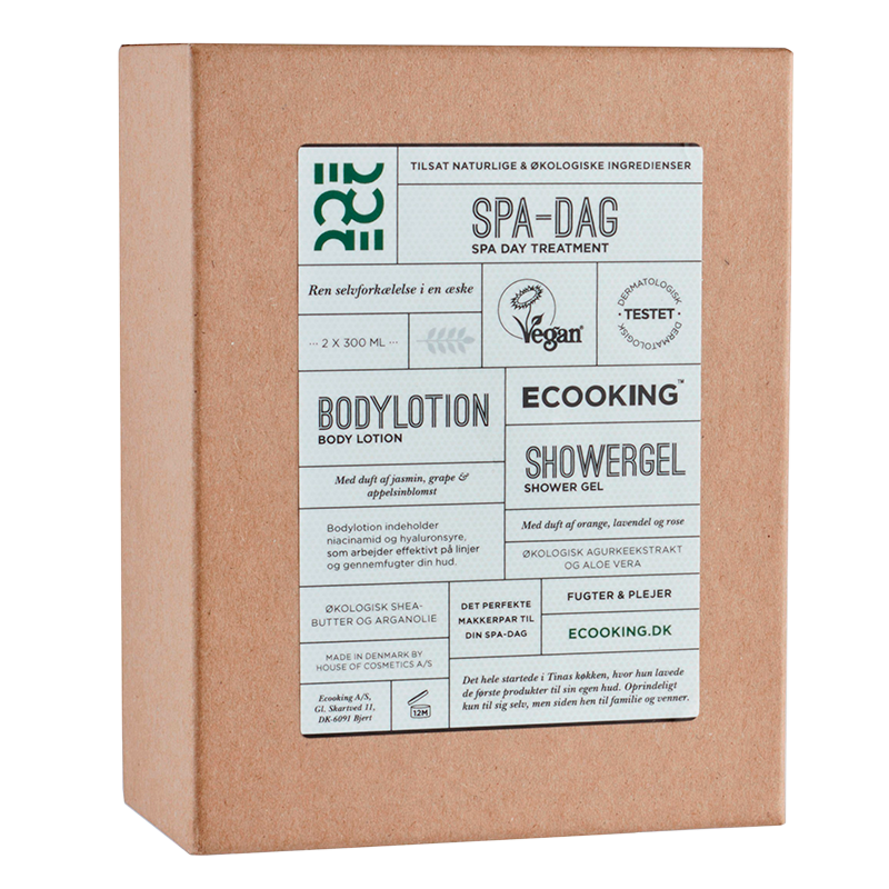 Gaveækse der indeholder det perfekte makker par Ecooking showergel og bodylotion, ideel til din spa-dag.